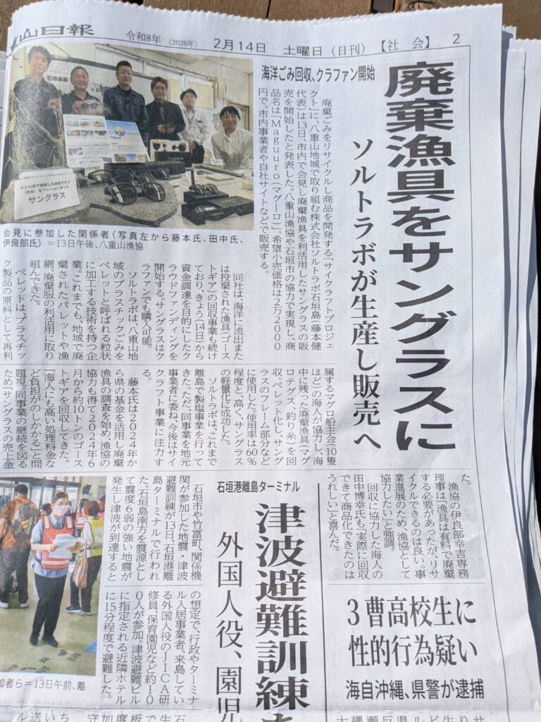 今年11月から石垣島の東側の珊瑚に覆い被さっている漁網をサイクラフトと白保の海人、新里さん達と回収を始めました。財源はサイクラフトが採択された【沖縄県産業振興事業】から費用の2/3が補填され、残りはサイクラフトから。 新 […]