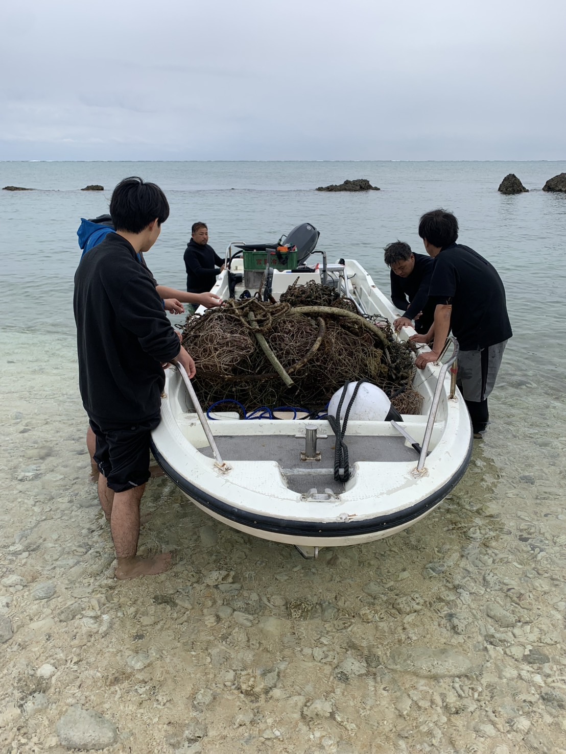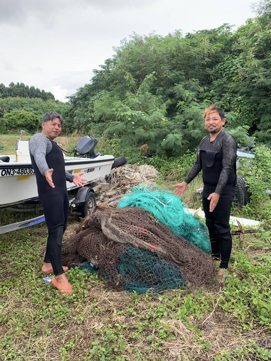 サイクラフトでは、市政に頼ることなく、島の海人(漁師さん)と協力し、自費で船を出し潜水、このゴーストギアを回収をしています。危険な作業ですが、海人たちも「このままでは駄目だ」と立ち上がってくれました。